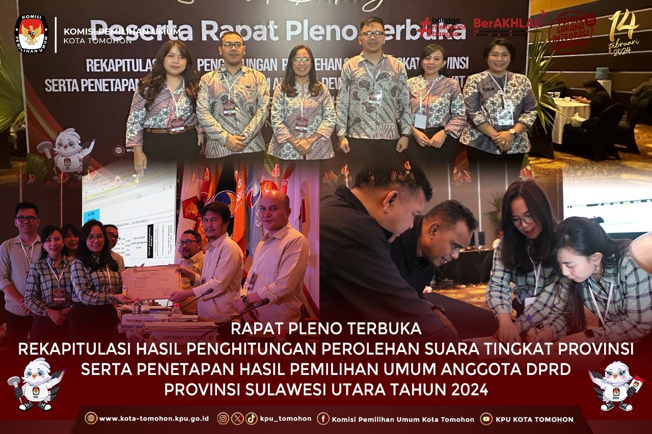 KPU Tomohon Ikuti Rapat Pleno Terbuka Rekapitulasi Hasil Penghitungan Perolehan Suara tingkat Provinsi serta Penetapan Hasil Pemilu Anggota DPRD Provinsi Sulawesi Utara Tahun 2024