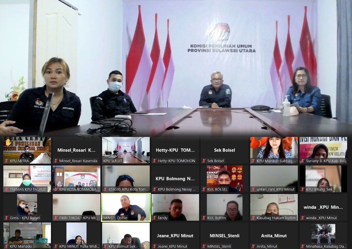 Tomohon, 26 Oktober 2021. KPU Kota Tomohon mengikuti Rapat Tindak Lanjut Instrumen Monitoring dan Evaluasi Pelaksanaan Kegiatan sesuai surat undangan KPU Provinsi Sulawesi Utara Nomor 366/TIK.02-Und/71/2021. Kegiatan ini diikuti oleh Kepala Bagian Program, Data, Informasi dan Sumber Daya Manusia Raymond Mamahit, Kasubag Program dan Data Lani Alou serta 15 KPU Kabupaten/Kota se-Sulawesi Utara yang diwakili oleh Sekretaris, Kasubag, dan Operator e-monev dari masing-masing satker.
