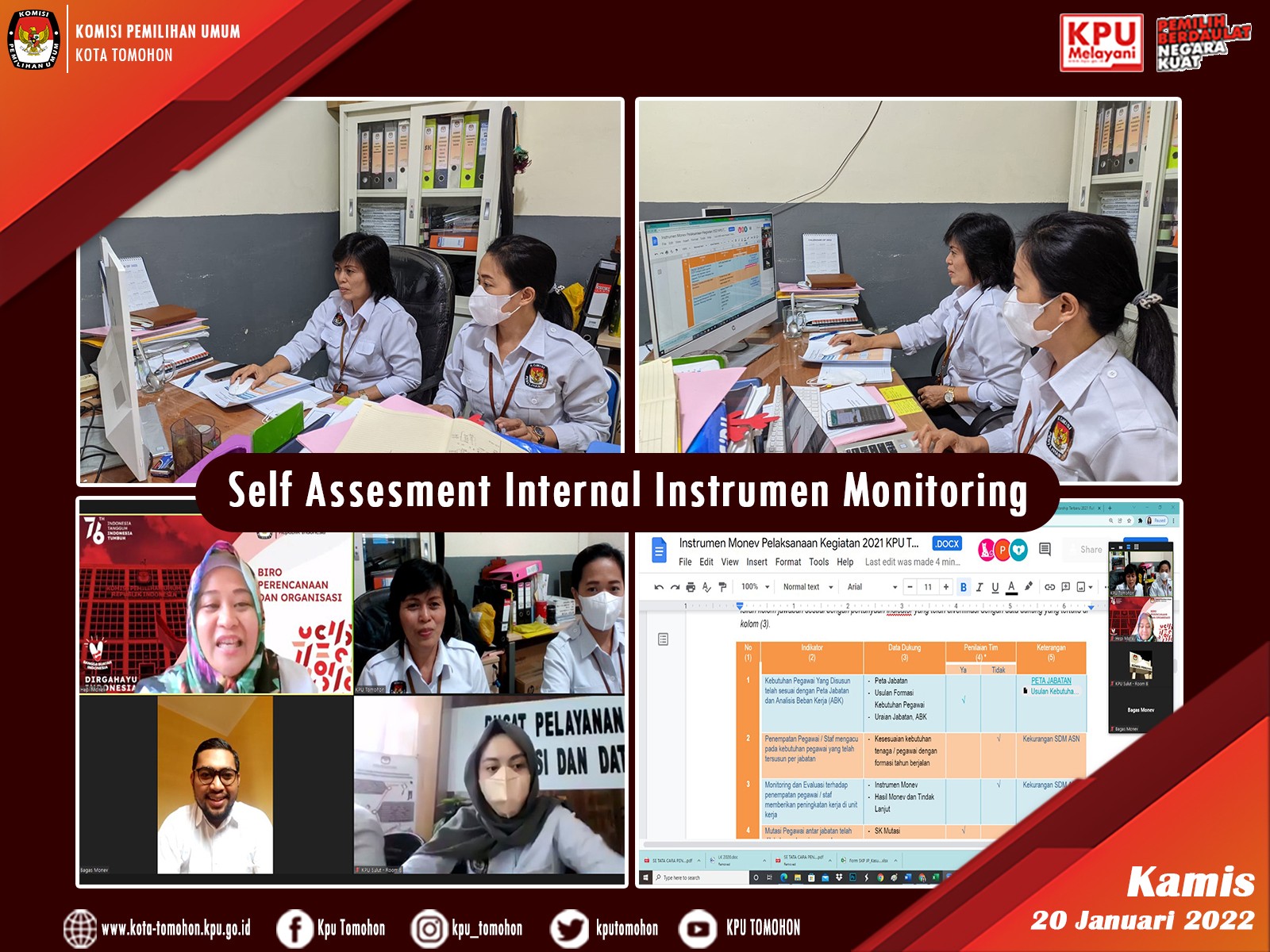Tomohon, kota-tomohon.kpu.go.id - KPU Kota Tomohon mengikuti Self Assement Internal yang dilaksanakan oleh KPU Provinsi. Kegiatan ini diikuti oleh Sekretaris KPU Kota Tomohon Bersama kasubag Program dan Data. Tujuan dari kegiatan ini yaitu untuk memonitoring dan mengevaluasi Pelaksanaan Kegiatan dan Anggaran di masing-masing satker.