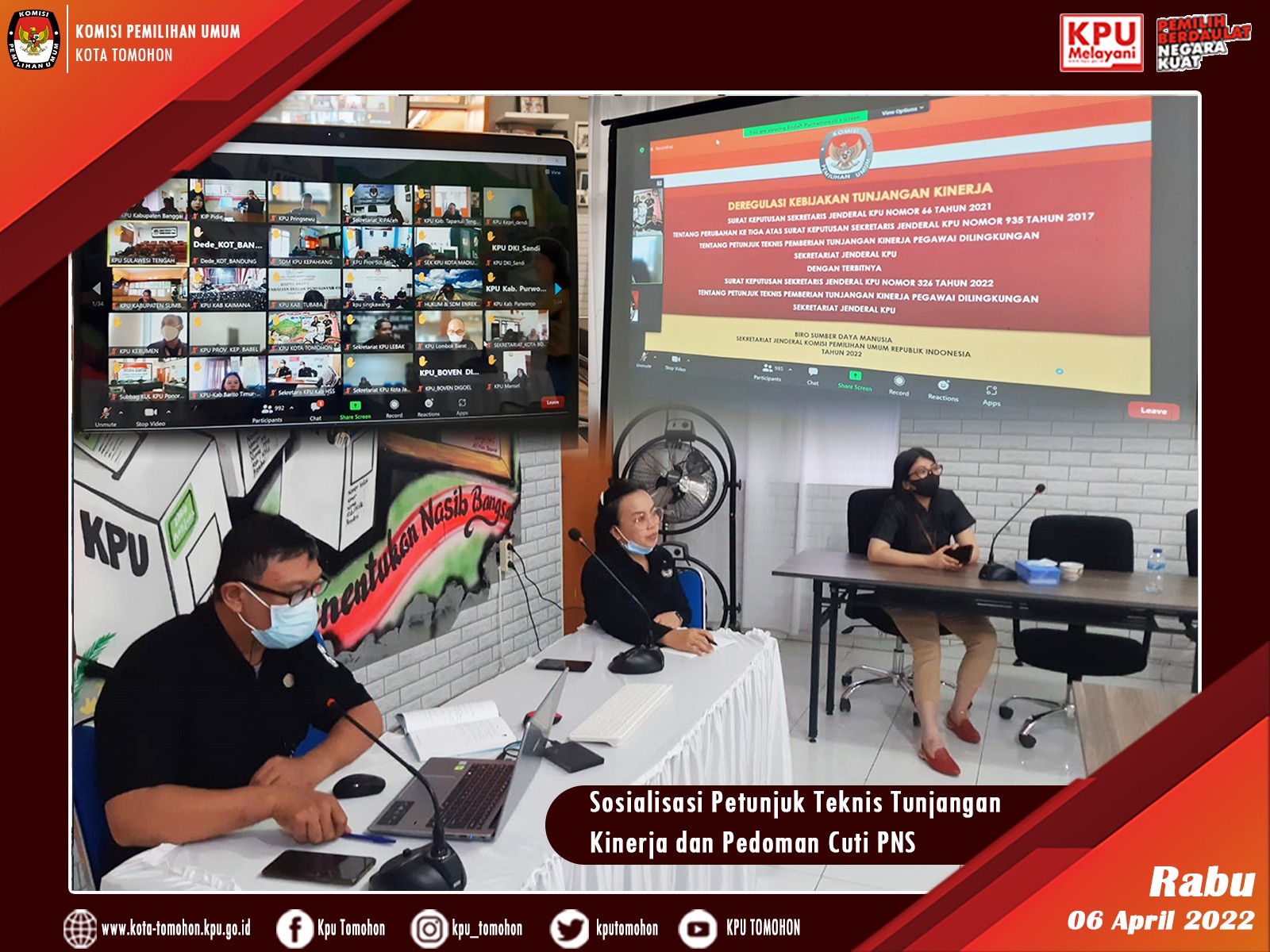 KPU Tomohon Ikuti Sosialisasi Petunjuk Teknis Tunjangan Kinerja dan Pedoman Cuti PNS