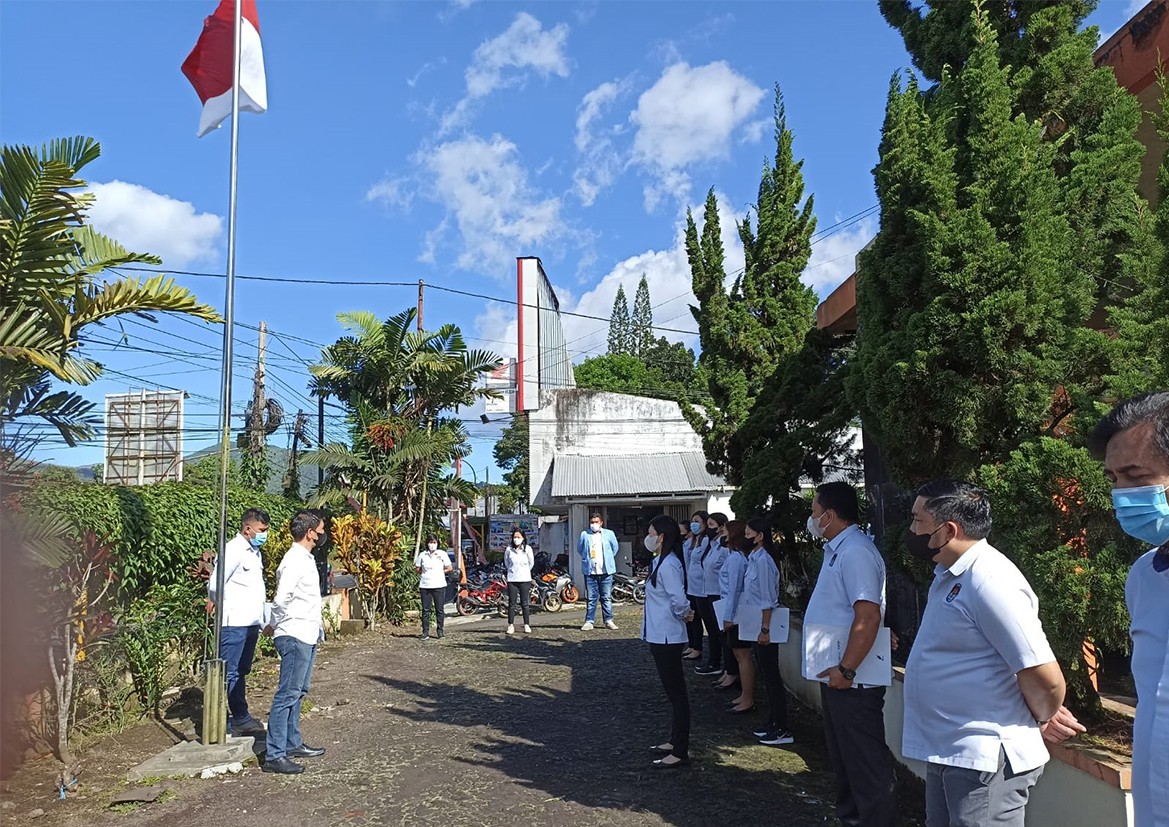 Tomohon, 06 Desember 2021. KPU Kota Tomohon melaksanakan Apel Pagi di halaman kantor KPU Kota Tomohon yang dihadiri oleh Komisioner, Sekretaris, Kasubbag dan staff KPU Kota Tomohon. Apel dipimpin oleh Ketua Divisi Sosialisasi, Pendidikan Pemilih, Partisipasi Masyarakat dan SDM Stenly Kowaas.