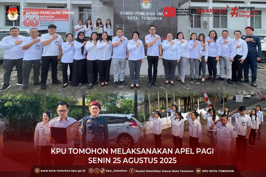 Tomohon, kota-tomohon.kpu.go.id - KPU Kota Tomohon melaksanakan Apel Pagi, Senin 25 Agustus 2025 di halaman kantor KPU Kota Tomohon.