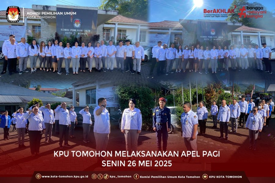 Kegiatan apel pagi rutin ini menjadi salah satu bentuk komitmen KPU Kota Tomohon dalam membangun budaya kerja yang tertib, transparan dan akuntabel.