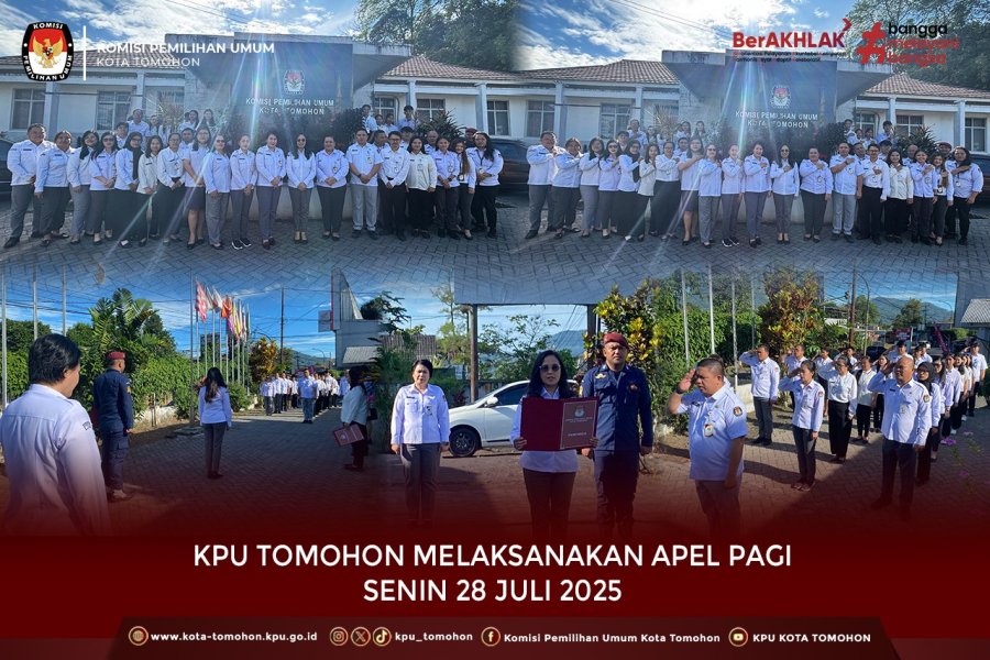 Tomohon, kota-tomohon.kpu.go.id - Komisioner dan jajaran Sekretariat KPU Kota Tomohon melaksanakan Apel Pagi, Senin 28 Juli 2025 di halaman Kantor KPU Kota Tomohon.