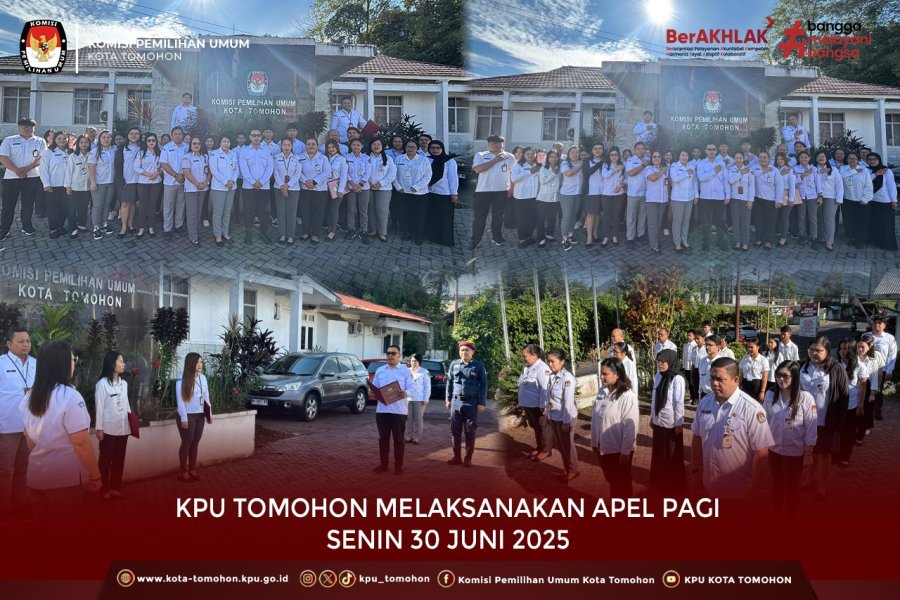 Tomohon, kota-tomohon.kpu.go.id - KPU Kota Tomohon melaksanakan apel pagi Senin (30/6) di halaman Kantor KPU Kota Tomohon.