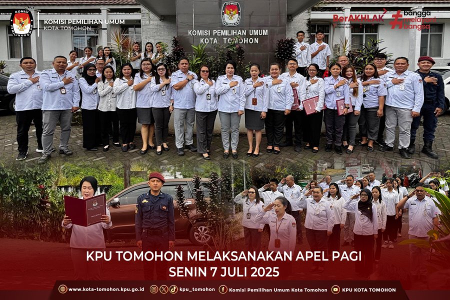 Kegiatan apel pagi ini menjadi salah satu bentuk komitmen KPU Kota Tomohon dalam membangun budaya kerja yang tertib, transparan dan akuntabel.