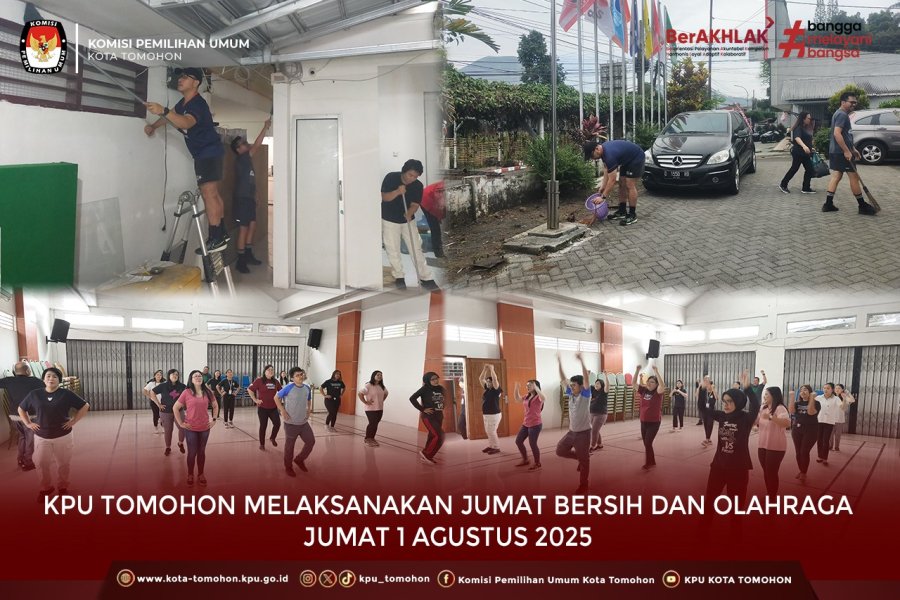 Tomohon, kota-tomohon.kpu.go.id - Dalam rangka menjaga dan meningkatkan kebugaran jajaran Sekretariat KPU Kota Tomohon serta menunjang produktivitas dan optimalisasi kinerja, maka diperlukan upaya untuk menjaga kesehatan dan kebugaran, melalui kegiatan Jumat Bersih dan Olahraga di lingkungan KPU Tomohon, Jumat (01/08/2025).
