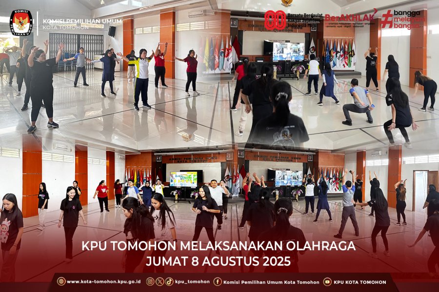 Tomohon, kota-tomohon.kpu.go.id - Tubuh yang sehat merupakan aspek penting bagi setiap orang dalam melaksanakan pekerjaan dan aktivitas sehari-hari, begitu juga lingkungan yang bersih dapat meningkatkan kenyamanan dalam bekerja. Sebagai bentuk tanggung jawab untuk kesehatan tubuh juga kepedulian akan kebersihan lingkungan, KPU Kota Tomohon melaksanakan kegiatan Jumat Bersih dan Olahraga, Jumat (8/8/2025).
