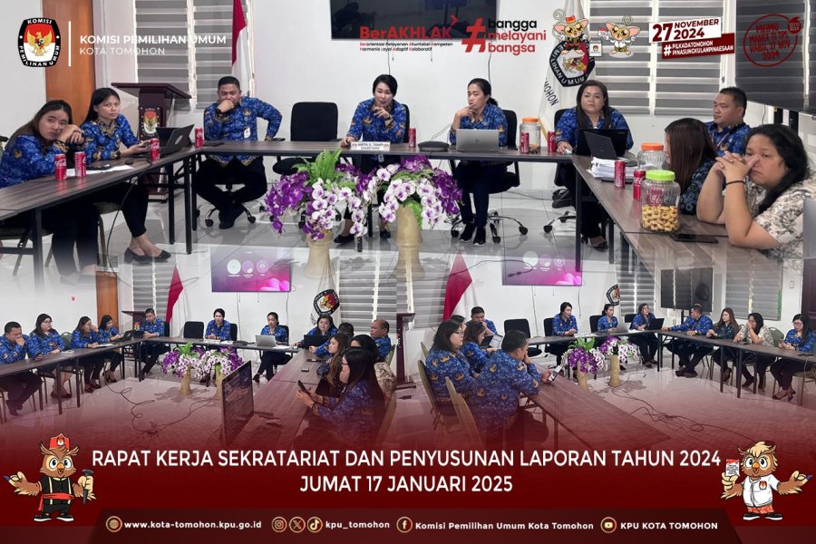 Tomohon, kota-tomohon.kpu.go.id - Sekretaris, Kepala Sub Bagian, Staf Sekretariat ASN maupun PPNPN melaksanakan Rapat Kerja Sekretariat serta Penyusunan Laporan Tahun 2024, bertempat di Kantor KPU Kota Tomohon, Jumat (17/01/2025).
