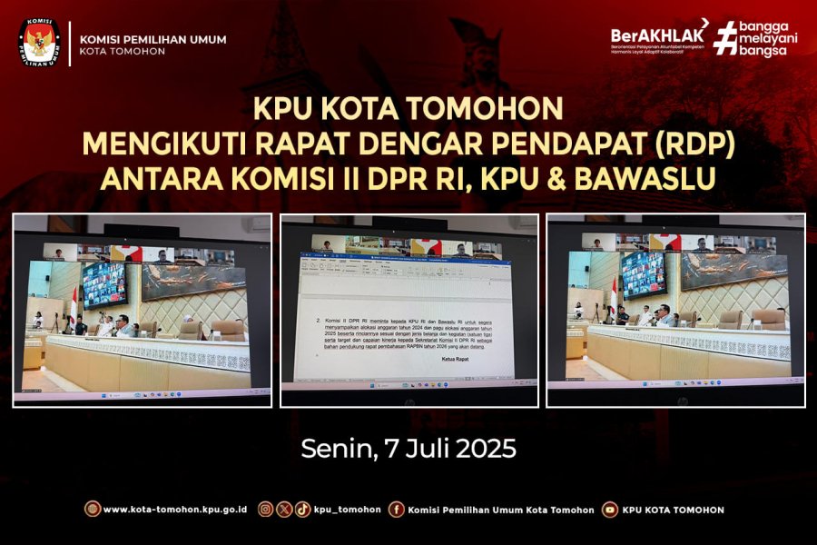 KPU Tomohon Mengikuti Rapat Dengar Pendapat (RDP) Antara Komisi II DPR RI, KPU dan Bawaslu