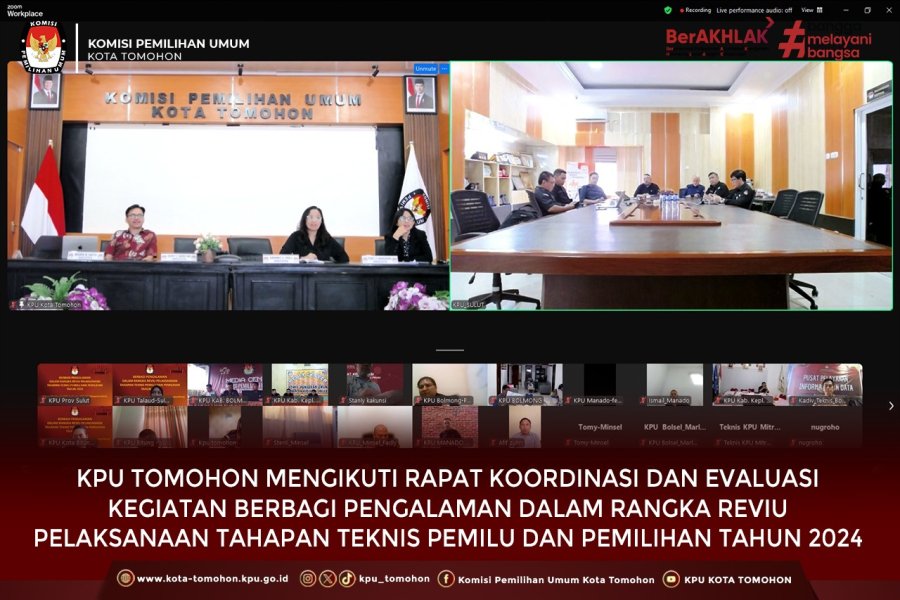 Tomohon, kota-tomohon.kpu.go.id - Komisi Pemilihan Umum (KPU) Kota Tomohon mengikuti Rapat Koordinasi dan Evaluasi Kegiatan Berbagi Pengalaman dalam Rangka Reviu Pelaksanaan Tahapan Teknis Pemilu dan Pemilihan Tahun 2024, yang diselenggarakan oleh KPU Provinsi Sulawesi Utara secara daring via zoom meeting, Rabu (21/05/2025).