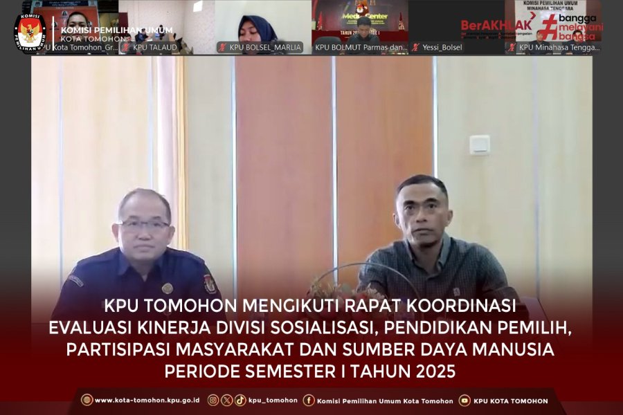 KPU Tomohon Mengikuti Rapat Koordinasi Evaluasi Kinerja Divisi Sosialisasi, Pendidikan Pemilih, Partisipasi Masyarakat dan Sumber Daya Manusia Periode Semester 1 Tahun 2025