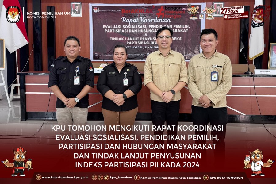 KPU Tomohon Mengikuti Rapat Koordinasi Evaluasi Sosialisasi, Pendidikan Pemilih, Partisipasi dan Hubungan Masyarakat dan Tindak Lanjut Penyusunan Indeks Partisipasi Pilkada 2024