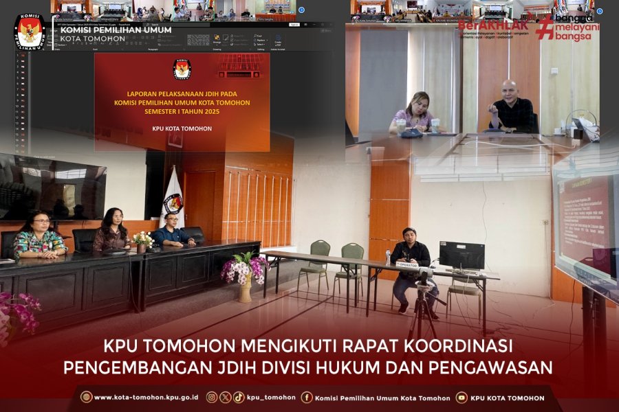 Tomohon, kota-tomohon.kpu.go.id - Komisi Pemilihan Umum (KPU) Kota Tomohon mengikuti Rapat Koordinasi Pengembangan Jaringan Dokumentasi dan Informasi Hukum (JDIH) yang diselenggarakan oleh Divisi Hukum dan Pengawasan KPU Provinsi Sulawesi Utara secara daring pada Jumat,1 Agustus 2025.