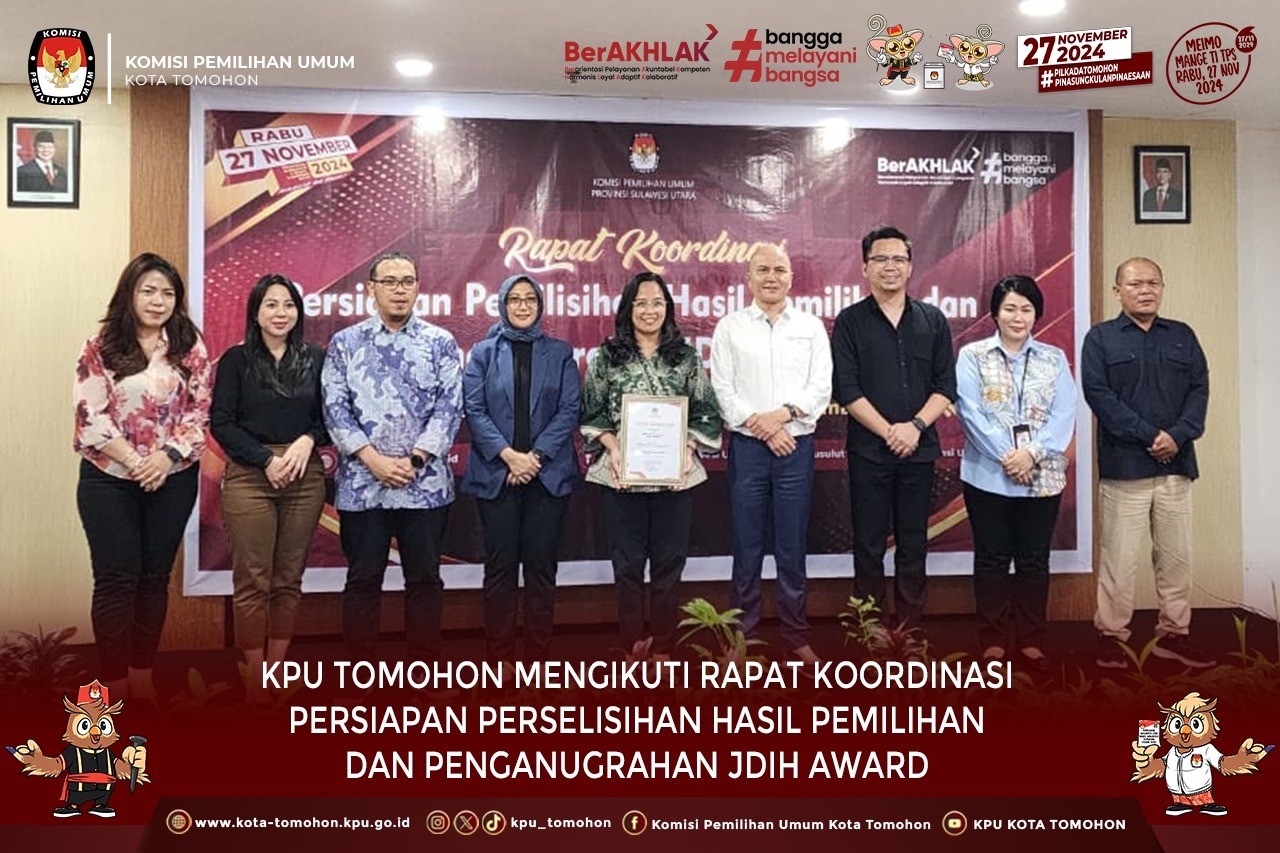 KPU Tomohon Mengikuti Rapat Koordinasi Persiapan Perselisihan Hasil Pemilihan dan Penganugrahan JDIH Award