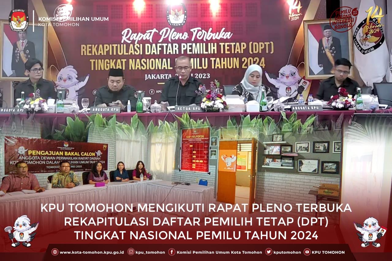 KPU Tomohon Mengikuti Rapat Pleno Terbuka Rekapitulasi Daftar Pemilih Tetap (DPT) Tingkat Nasional Pemilu Tahun 2024