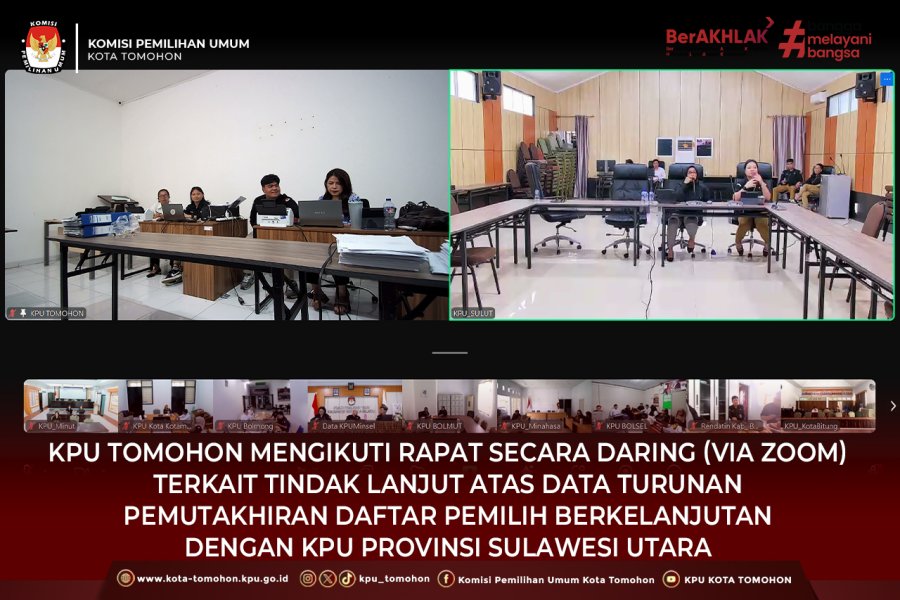 Tomohon, kota-tomohon.kpu.go.id - KPU Kota Tomohon mengikuti rapat secara daring melalui aplikasi Zoom Meeting bersama KPU Provinsi Sulawesi Utara, Rabu (11/06/2025), dalam rangka menindaklanjuti data turunan Pemutakhiran Data Pemilih Berkelanjutan (PDPB).