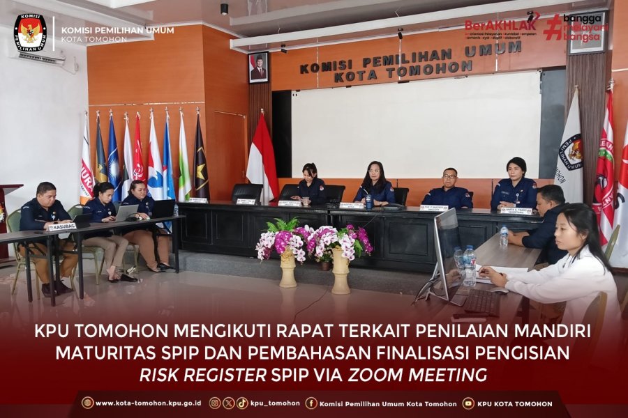 Tomohon, kota-tomohon.kpu.go.id – KPU Kota Tomohon mengikuti Rapat Koordinasi Finalisasi Pengisian Risk Register SPIP yang diselenggarakan secara daring oleh KPU Provinsi Sulawesi Utara pada Selasa 24 Juni 2025.