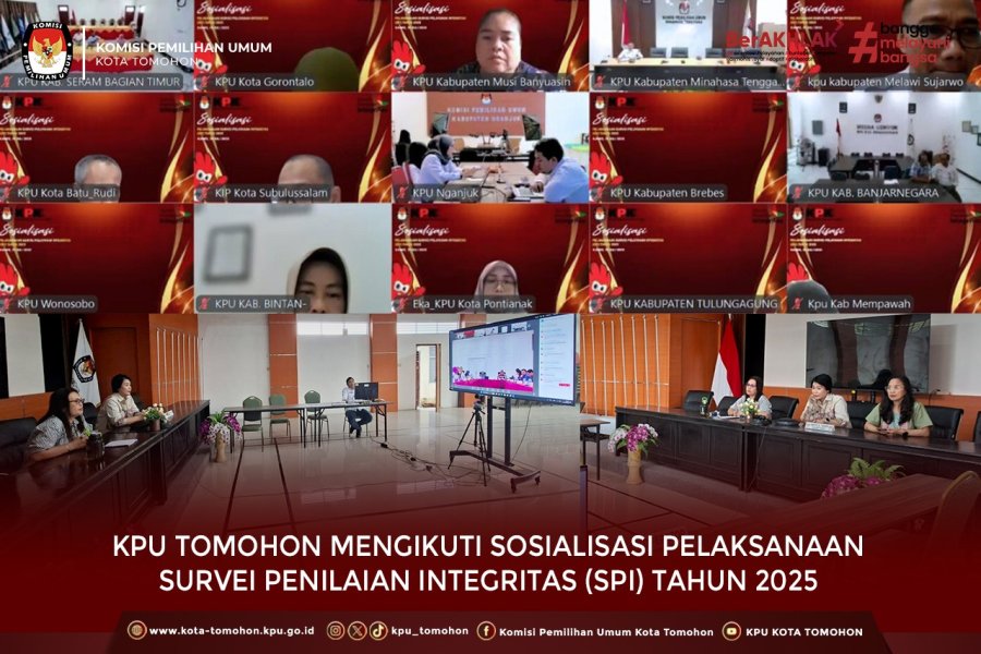 Tomohon, kota-tomohon.kpu.go.id - Komisi Pemilihan Umum Kota Tomohon mengikuti kegiatan Sosialisasi Survei Penilaian Integritas (SPI) Tahun 2025 yang dilaksanakan oleh KPU RI secara daring, pada Kamis, 31 Juli 2025.