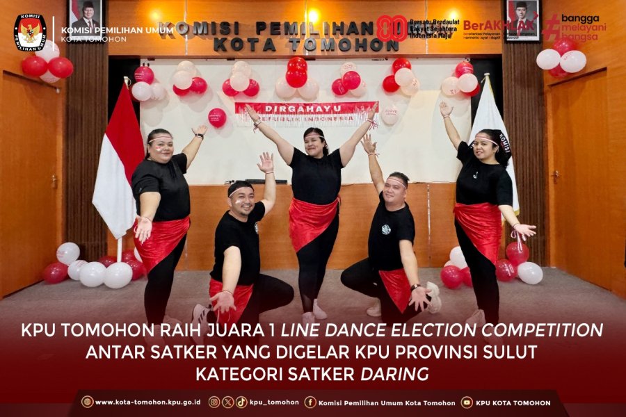 Tomohon, kota-tomohon.kpu.go.id - Dalam rangka semarak Kemerdekaan Republik Indonesia ke-80, Komisi Pemilihan Umum (KPU) Kota Tomohom mengikuti Line Dance Election Competition antar Satuan Kerja yang digelar oleh KPU Provinsi Sulawesi Utara kategori Satker Daring, Jumat (15/08/2025).