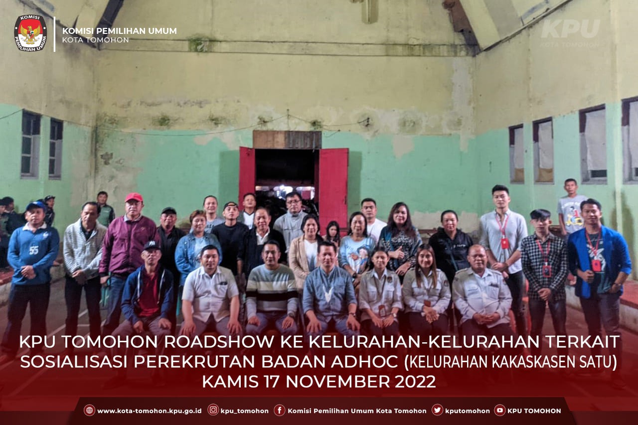 Tomohon, kota-tomohon.kpu.go.id - Sosialisasi ke perangkat Kelurahan Kakaskasen Satu, terkait rekrutmen Badan Adhoc (PPK/PPS). Hadir Lurah Marvin Pangerapan, Para Kepala Lingkungan dan Wakil Kepala Lingkungan, Linmas serta Mahasiswa KKN di Kelurahan Kakaskasen Satu.