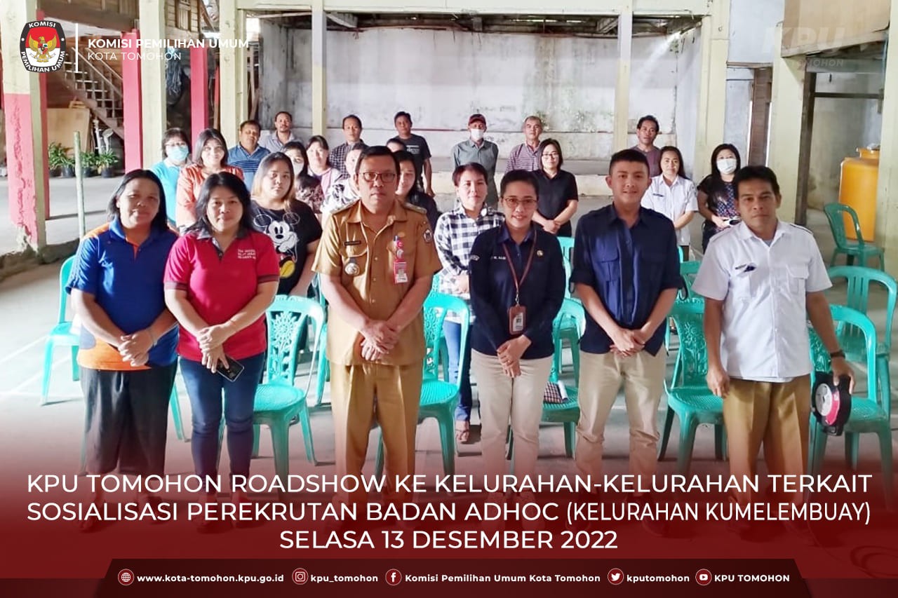 Tomohon, kota-tomohon.kpu.go.id - Sosialisasi ke perangkat Kelurahan Kumelembuay, terkait rekrutmen Badan Adhoc (PPK/PPS). Hadir Lurah Audi Pangemanan, Para Kepala Lingkungan dan Wakil Kepala Lingkungan di Kelurahan Kumelembuay.