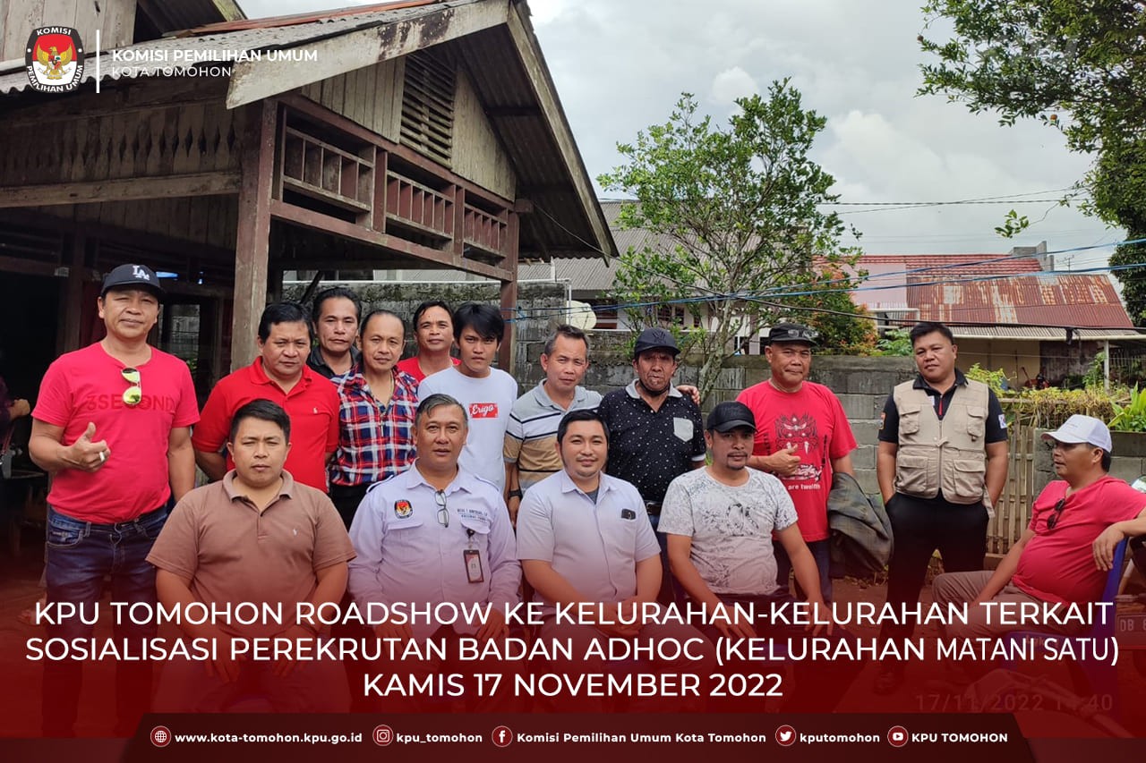Tomohon, kota-tomohon.kpu.go.id - Sosialisasi ke perangkat Kelurahan Matani Satu, terkait rekrutmen Badan Adhoc (PPK/PPS). Hadir Sekretaris Lurah Steven Pandelaki, Para Kepala Lingkungan dan Wakil Kepala Lingkungan di Kelurahan Matani Satu.