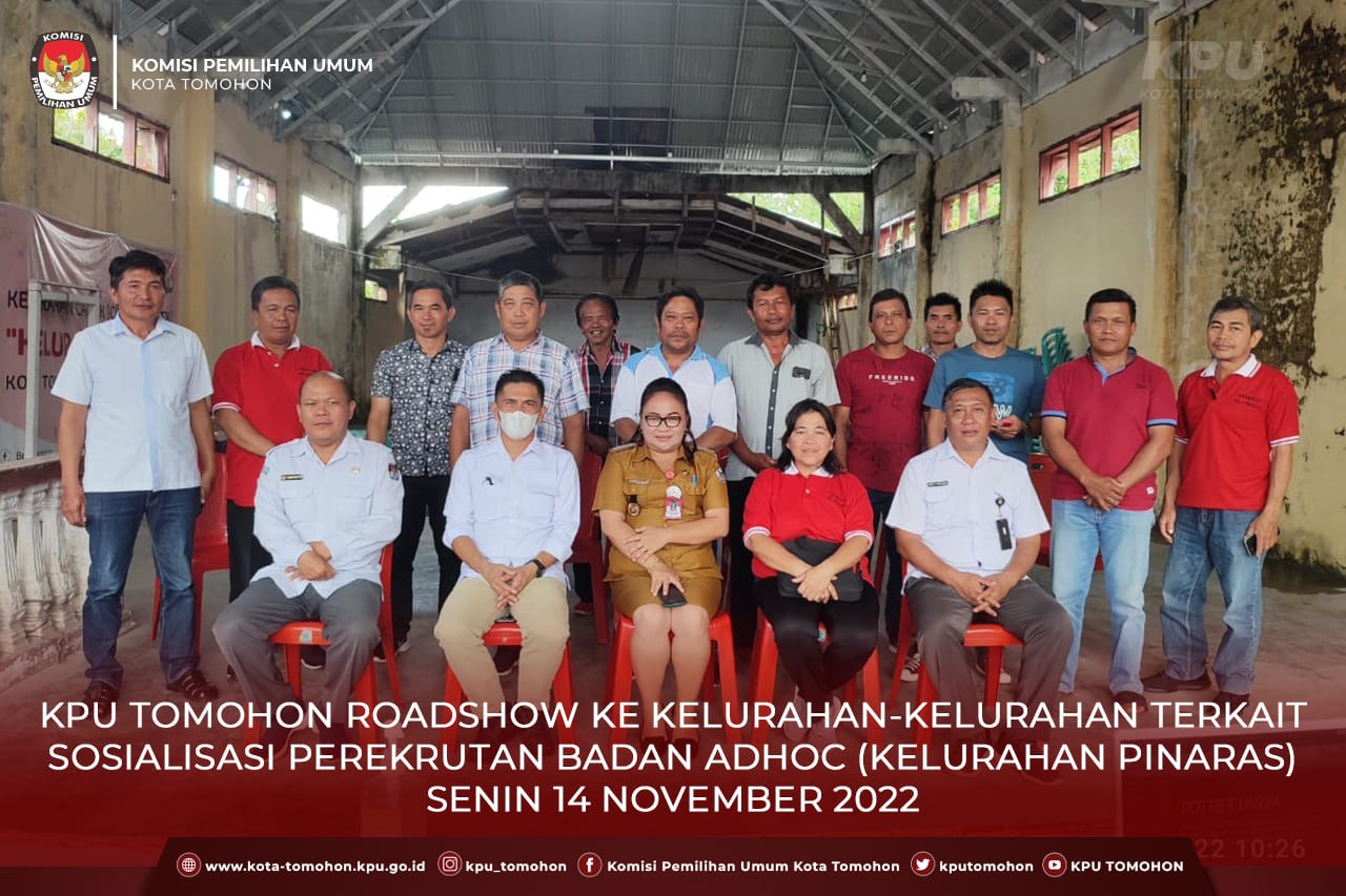 Tomohon, kota-tomohon.kpu.go.id - Sosialisasi ke perangkat Kelurahan Pinaras, terkait rekrutmen Badan Adhoc (PPK/PPS). Hadir Lurah Mieke Tulung, Para Kepala Lingkungan dan Wakil Kepala Lingkungan di Kelurahan Pinaras.