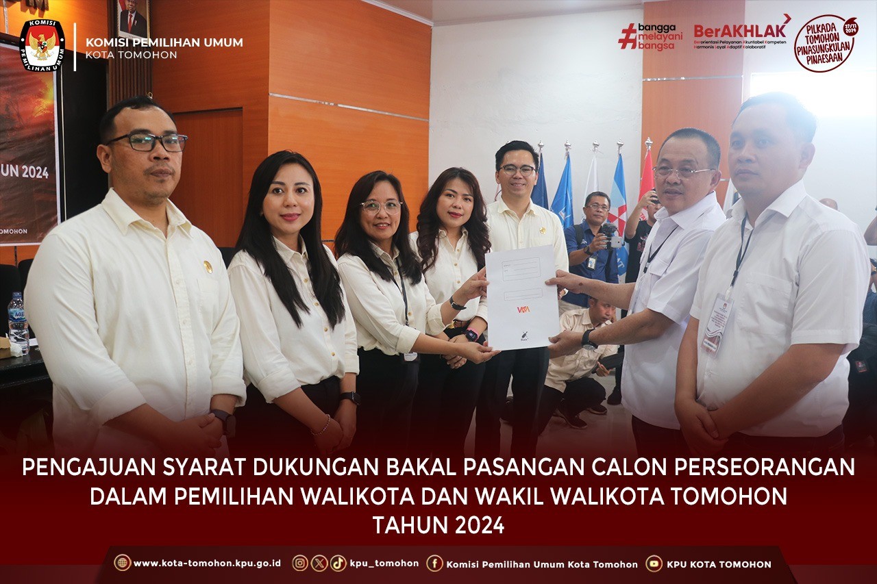 KPU Tomohon Terima Pengajuan Syarat Dukungan Bakal Pasangan Calon Perseorangan dalam Pemilihan Walikota dan Wakil Walikota Tomohon Tahun 2024