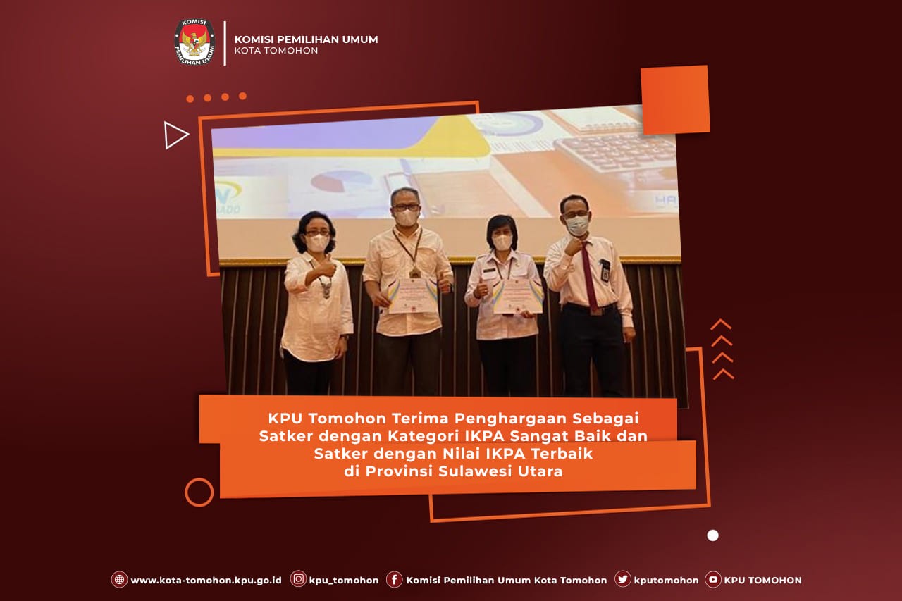 KPU Tomohon menerima Penghargaan sebagai Satuan Kerja dengan Kategori IKPA Sangat Baik Satker dengan Nilai IKPA Terbaik di Provinsi Sulawesi Utara Periode Triwulan I Tahun 2022. Penghargaan ini dapat diraih karena adanya sinergitas dari Ketua KPU Tomohon Harryanto Lasut bersama Anggota Robby Golioth, Stenly Kowaas, Albertien Pijoh dan Jacobus Wowor dan juga dukungan dari para kasubbag beserta staf.