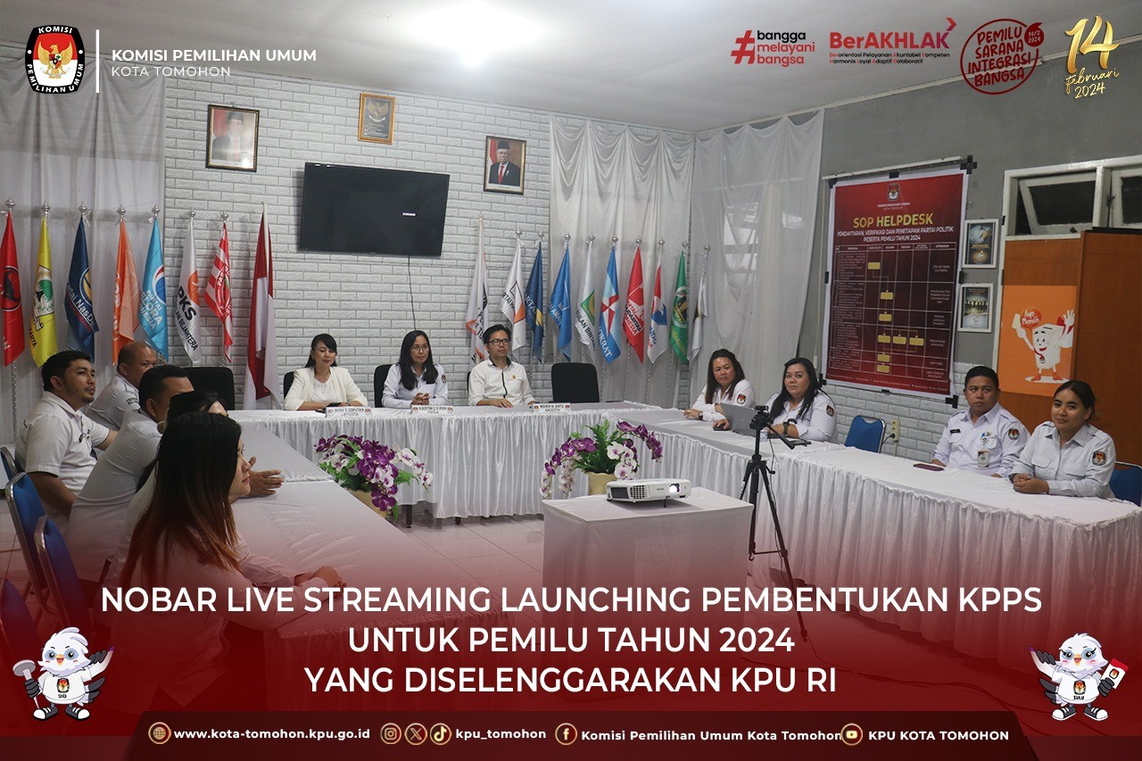 Tomohon, kota-tomohon.kpu.go.id - Ketua dan Anggota KPU Kota Tomohon serta staf sekretariat menyaksikan Live Streaming Launching Pembentukan KPPS untuk Pemilihan Umum Tahun 2024.