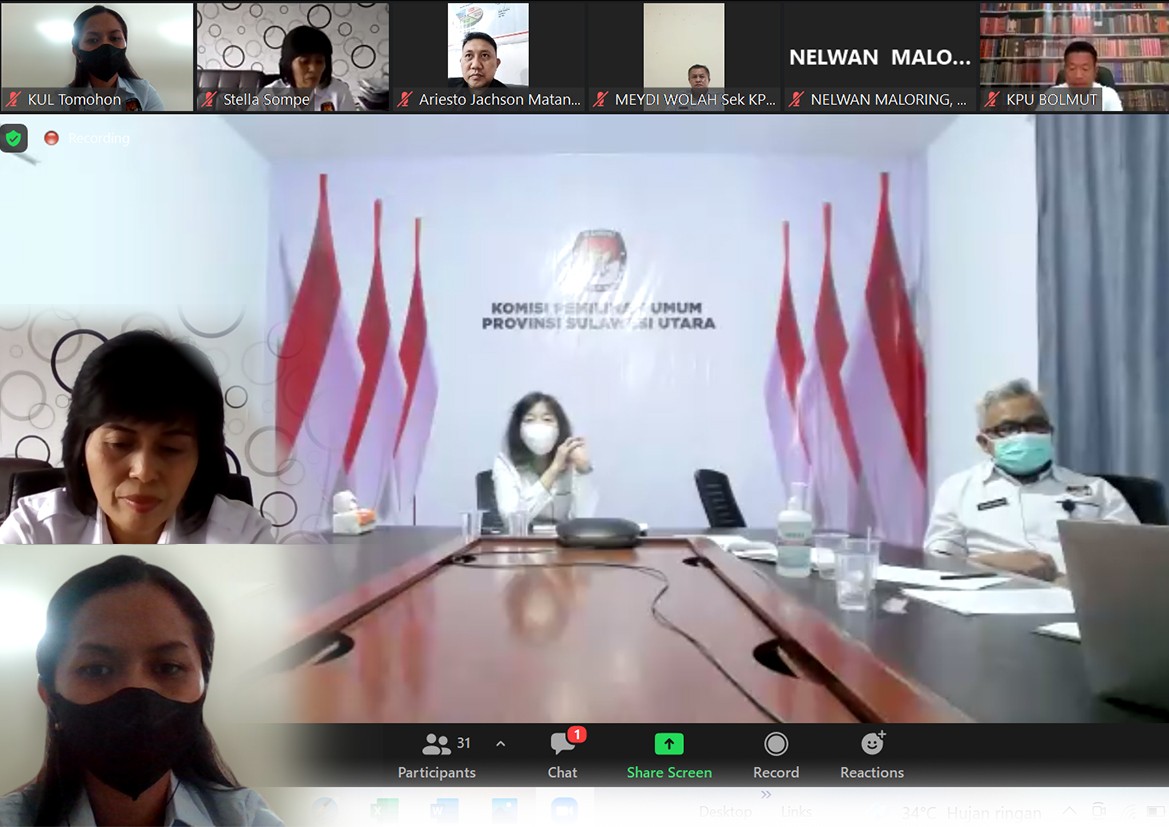 Tomohon, 07 Oktober 2021. Berdasarkan undangan dari KPU Provinsi, Sekretaris KPU Kota Tomohon – Dr. Stella S. Sompe, SH, M.AP, Kasubbag Keuangan, Umum dan Logistik KPU Kota Tomohon bersama sekretaris dan kasubbag KUL se-Provinsi Sulawesi Utara mengikuti Rapat Pemantauan Pelaksanaan Kebijakan WFH di 15 Satker di Lingkungan KPU Provinsi Sulawesi Utara.