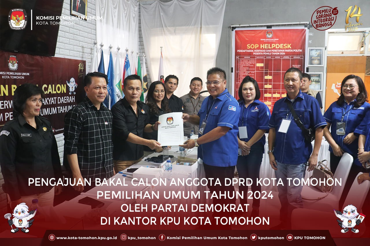 Pengajuan Bakal Calon Anggota DPRD Kota Tomohon Pemilu Tahun 2024 oleh Partai Demokrat di Kantor KPU Kota Tomohon