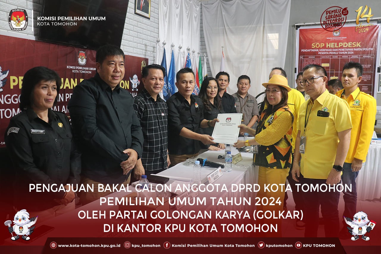 Pengajuan Bakal Calon Anggota DPRD Kota Tomohon Pemilu Tahun 2024 oleh Partai Golongan Karya (Golkar) di Kantor KPU Kota Tomohon