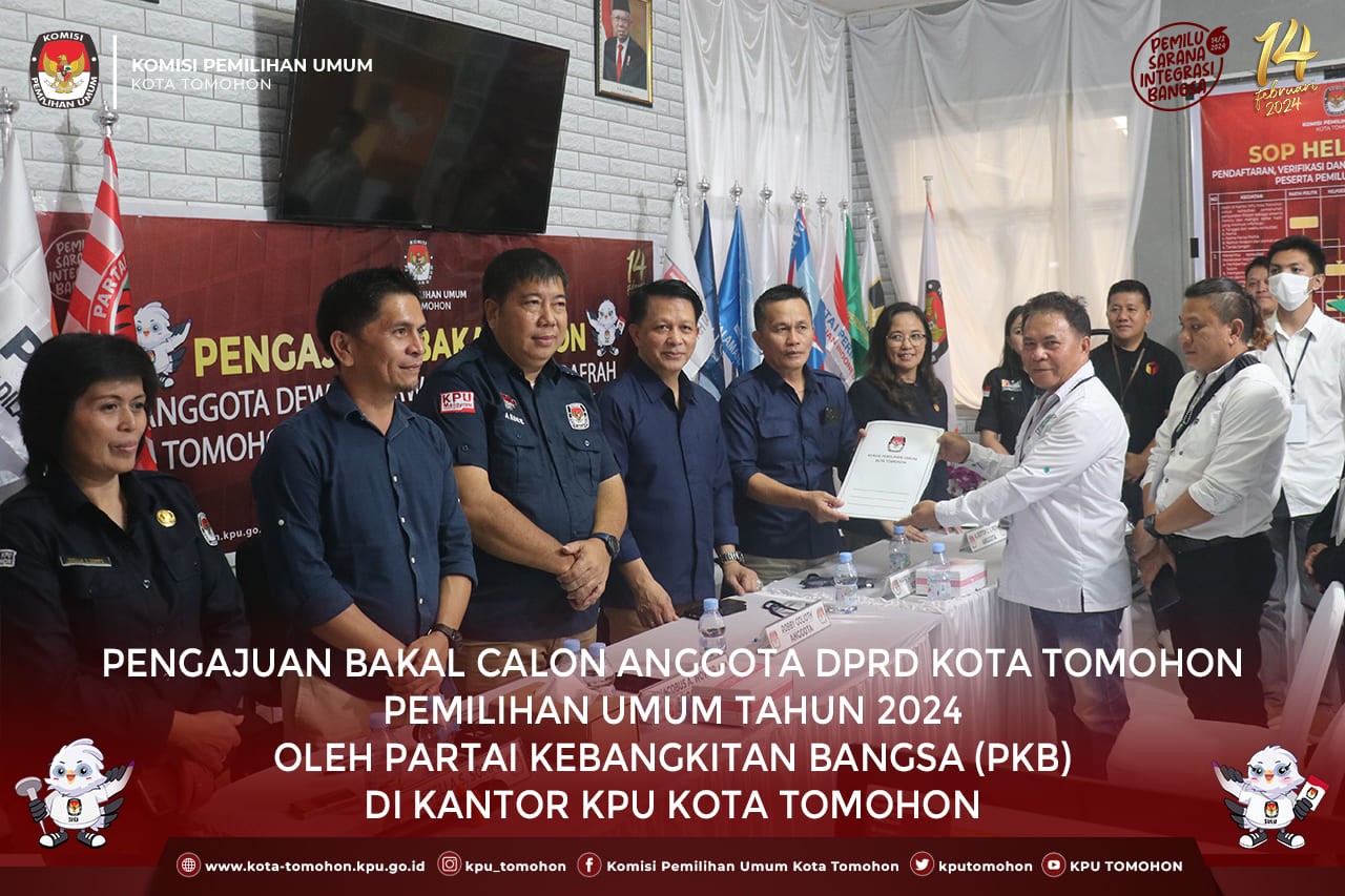 Pengajuan Bakal Calon Anggota DPRD Kota Tomohon Pemilu Tahun 2024 oleh Partai Kebangkitan Bangsa (PKB) di Kantor KPU Kota Tomohon