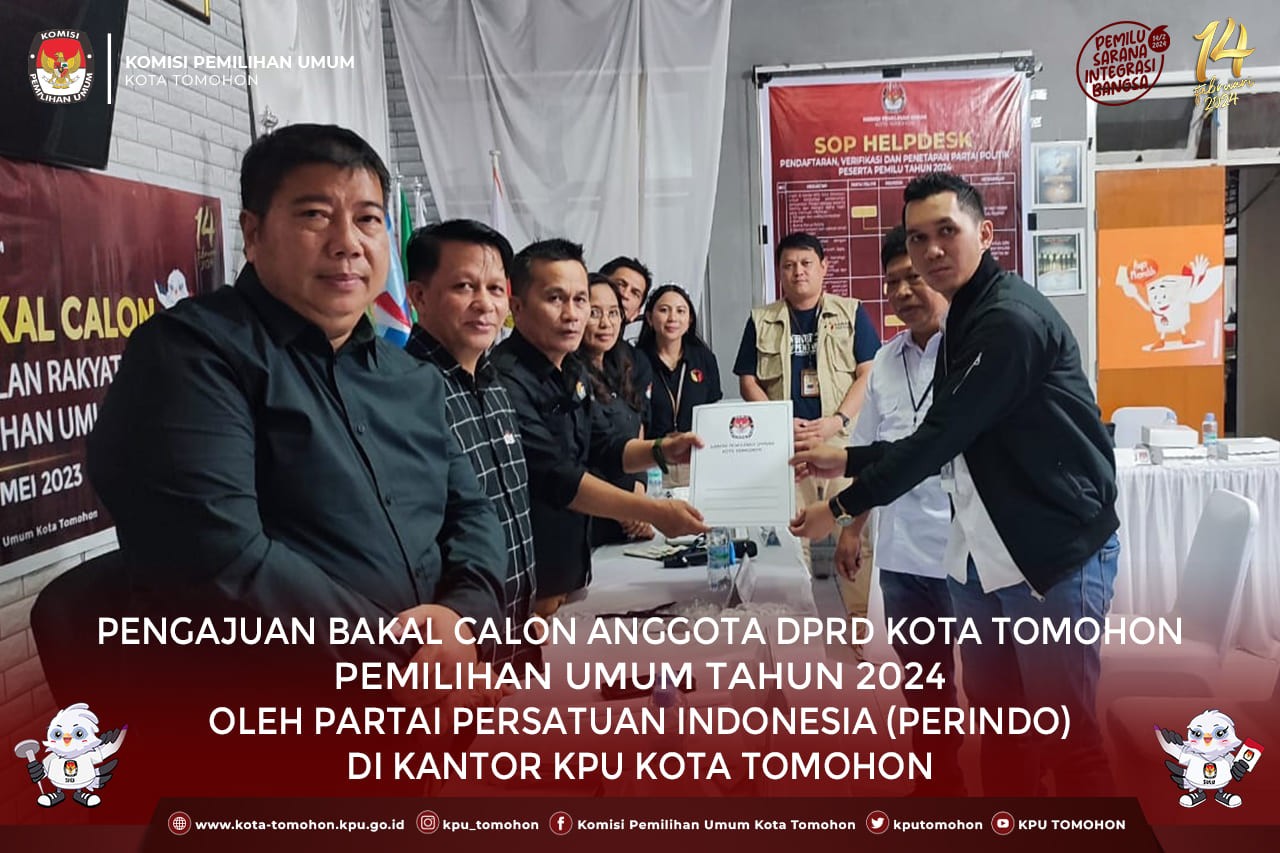Setelah dilakukan penelitian, KPU Tomohon menyatakan hasil akhir Dokumen Pengajuan Partai Perindo diterima.