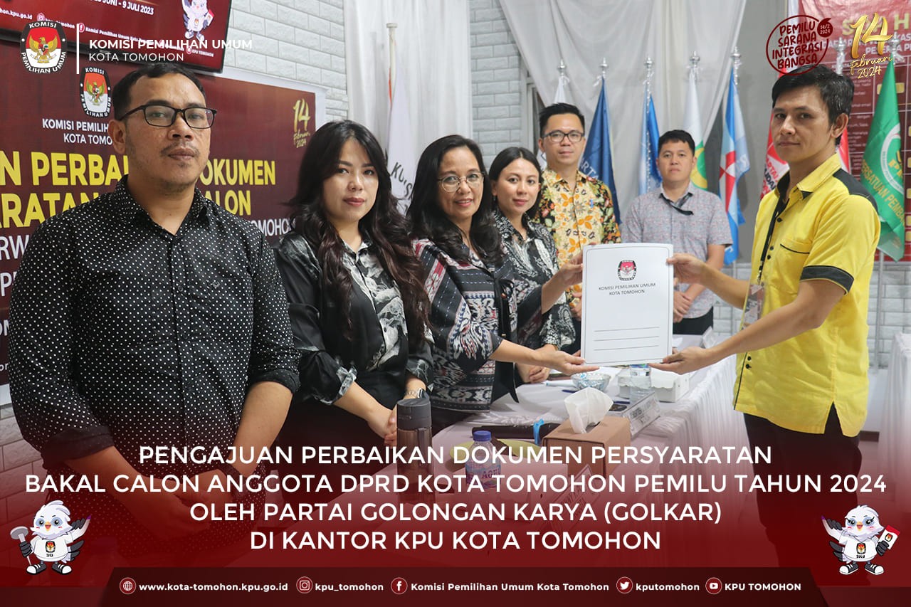 Pengajuan Perbaikan Dokumen Persyaratan Bakal Calon Anggota DPRD Kota Tomohon Pemilu Tahun 2024 oleh Partai Golongan Karya (Golkar) di Kantor KPU Kota Tomohon