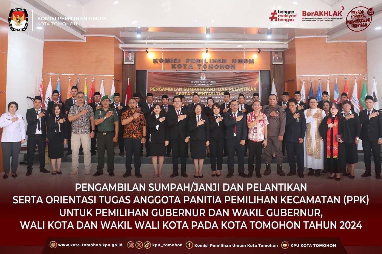 Pengambilan Sumpah/Janji dan Pelantikan Anggota Panitia Pemilihan Kecamatan (PPK) untuk Pemilihan Gubernur dan Wakil Gubernur, Wali Kota dan Wakil Wali Kota pada Kota Tomohon Tahun 2024
