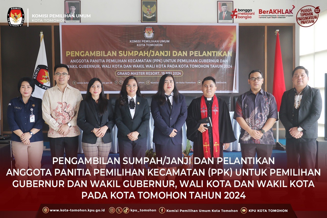 Pengambilan Sumpah/Janji dan Pelantikan Anggota PPK Kecamatan Tomohon Tengah untuk Pemilihan Gubernur dan Wakil Gubernur, Wali Kota dan Wakil Wali Kota pada Kota Tomohon Tahun 2024