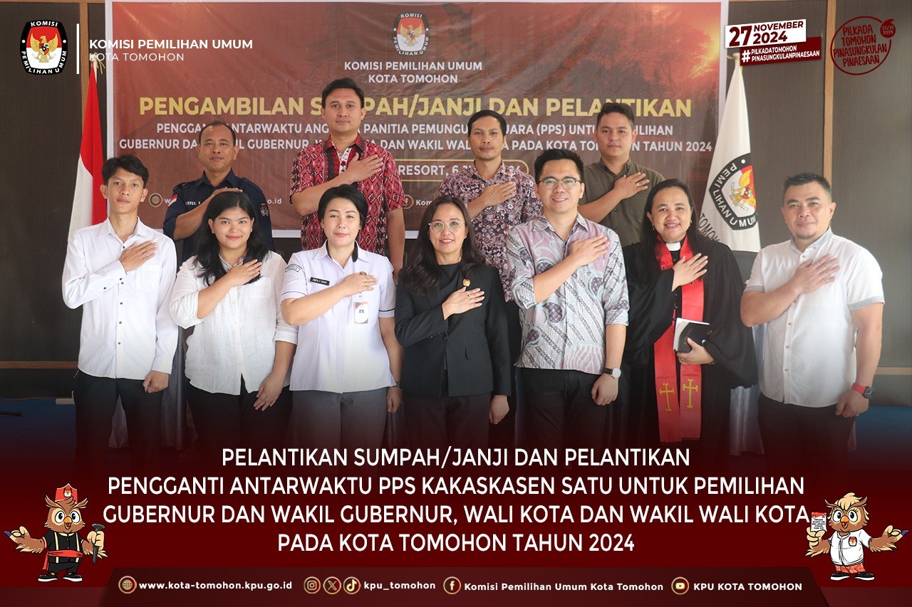 Pengambilan Sumpah/Janji dan Pelantikan PAW Anggota PPS Kelurahan Kakaskasen Satu untuk Pemilihan Gubernur dan Wakil Gubernur, Wali Kota dan Wakil Wali Kota pada Kota Tomohon Tahun 2024
