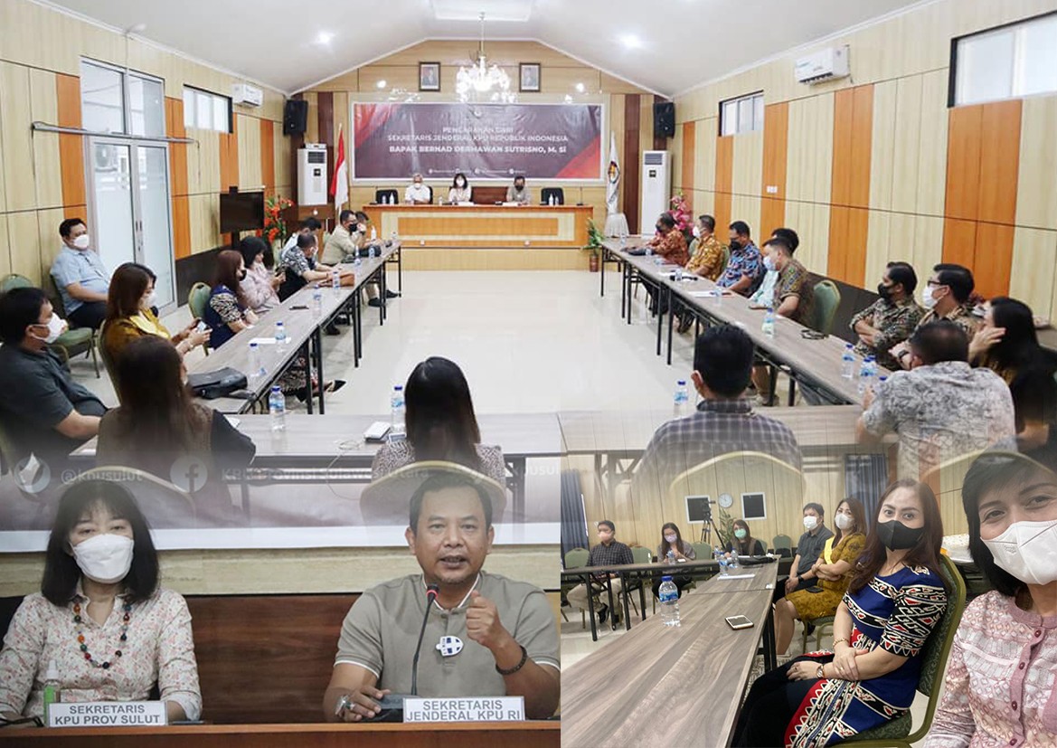Tomohon, 25 September 2021. Sekretaris Jenderal KPU RI Bernad Dermawan Sutrisno memberikan pengarahan kepada jajaran Sekretariat KPU Provinsi dan KPU Kota/Kabupaten di lingkungan Provinsi Sulawesi Utara untuk memperkuat peran dalam pelaksanaan Pemilu dan Pemilihan Tahun 2024.