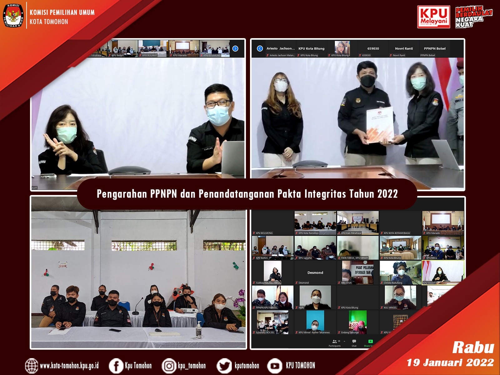Tomohon, kota-tomohon.kpu.go.id - PPNPN KPU Kota Tomohon mengikuti Pengarahan dan Penandatanganan Pakta Integritas Tahun 2022 yang diselenggarakan oleh KPU Provinsi Sulawsi Utara melalui Zoom Meeting.