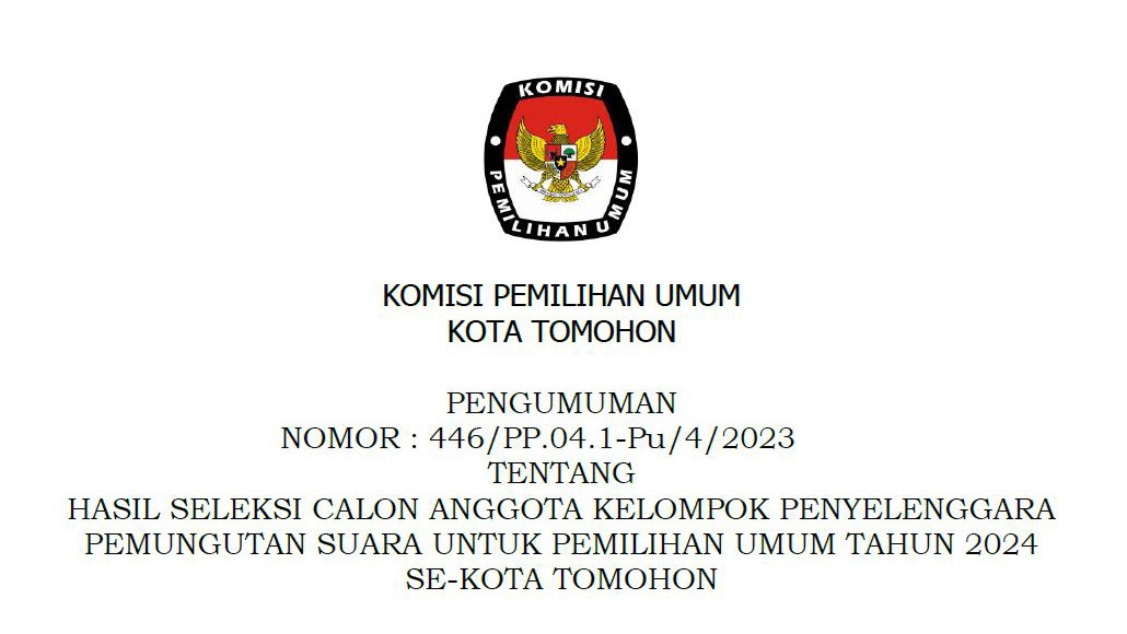 Pengumuman Hasil Seleksi Calon Anggota Kelompok Penyelenggara Pemungutan Suara (KPPS) untuk Pemilihan Umum Tahun 2024 se-Kota Tomohon