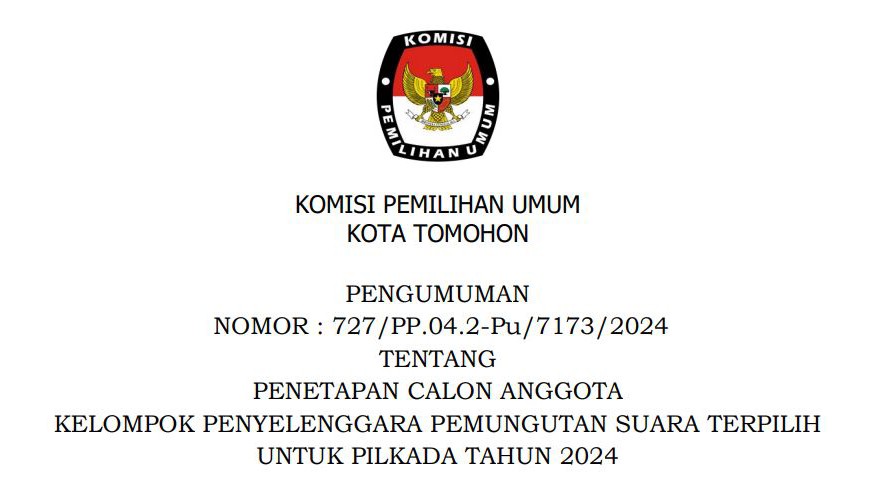 Berdasarkan Berita Acara Rapat Pleno PPS seluruh Kota Tomohon tentang Penetapan Calon Anggota Kelompok Penyelenggara Pemungutan Suara Terpilih untuk Pilkada Tahun 2024, disampaikan hal-hal sebagai berikut: