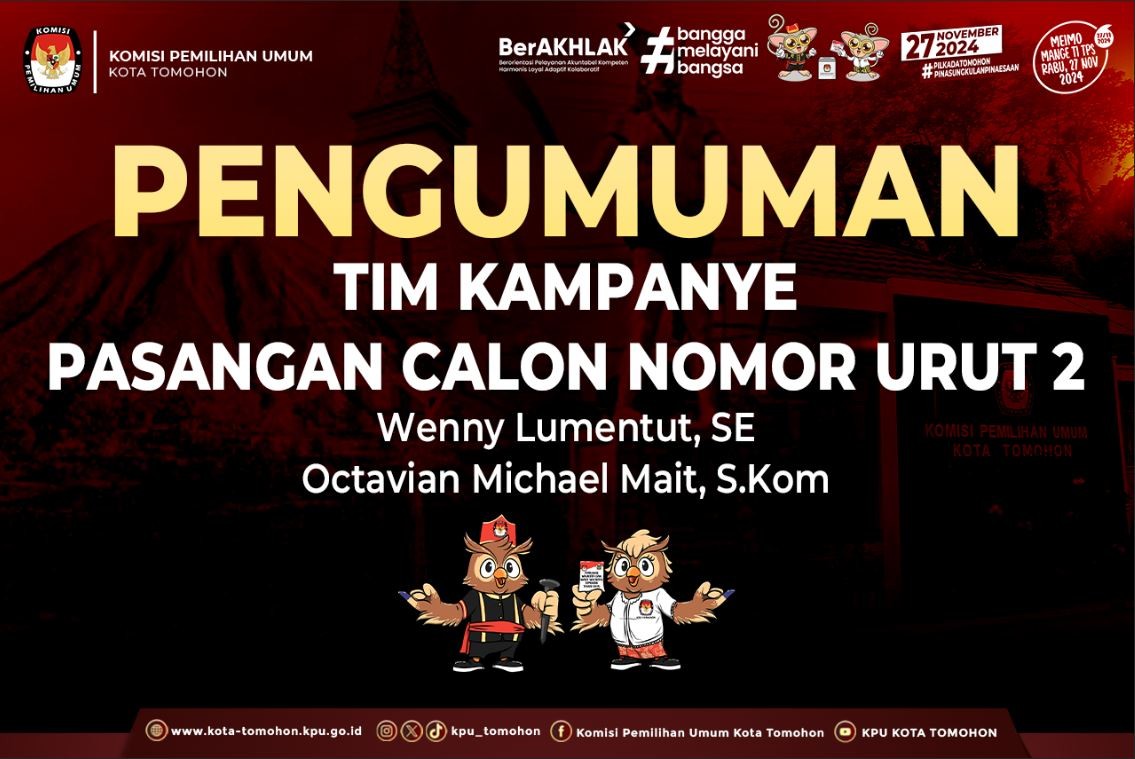 #TemanPemilih, berikut kami sampaikan Tim Kampanye Pasangan Calon Nomor Urut 2 Wenny Lumentut, SE dan Octavian Michael Mait, S.Kom