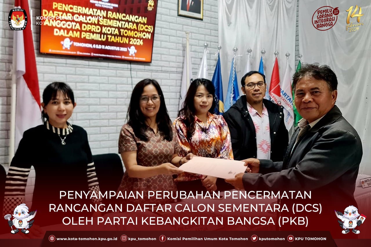 Partai Kebangkitan Bangsa (PKB) merupakan Partai Politik Ketiga yang menyampaikan Perubahan Pencermatan Rancangan DCS Bakal Calon Anggota DPRD ke KPU Kota Tomohon.