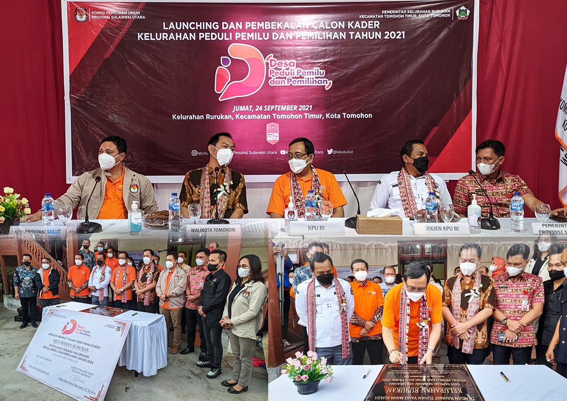 Jumat, 24 September 2021. KPU Provinsi Sulawesi Utara melaksanakan Peresmian dan Pembekalan Kader Desa Peduli Pemilu dan Pemilihan di Kelurahan Rurukan Kota Tomohon. Acara ini dihadiri langsung oleh Anggota KPU RI I Dewa Kade Wiarsa Raka Sandi bersama Sekretaris Jenderal KPU RI Bernad Dermawan Sutrisno.