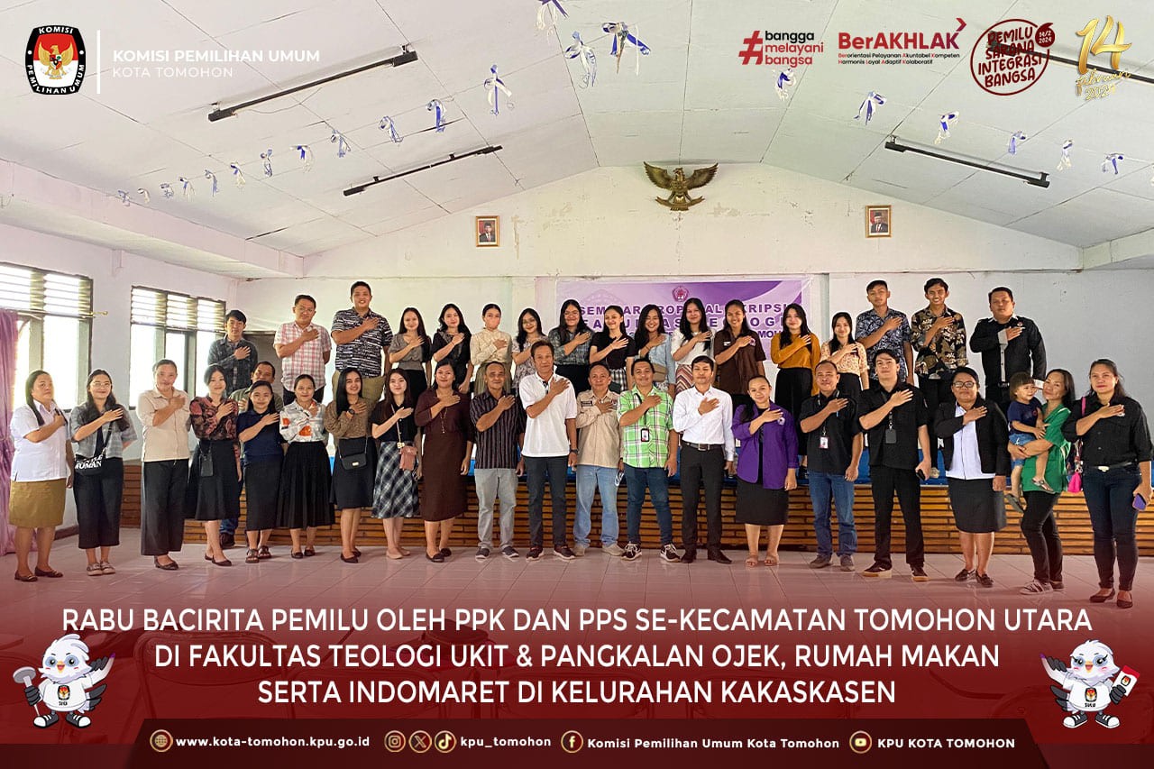 Rabu Bacirita Pemilu oleh PPK dan PPS se-Kecamatan Tomohon Utara di Fakultas Teologi UKIT dan Pangkalan Ojek, Rumah Makan serta Indomaret di Kelurahan Kakaskasen