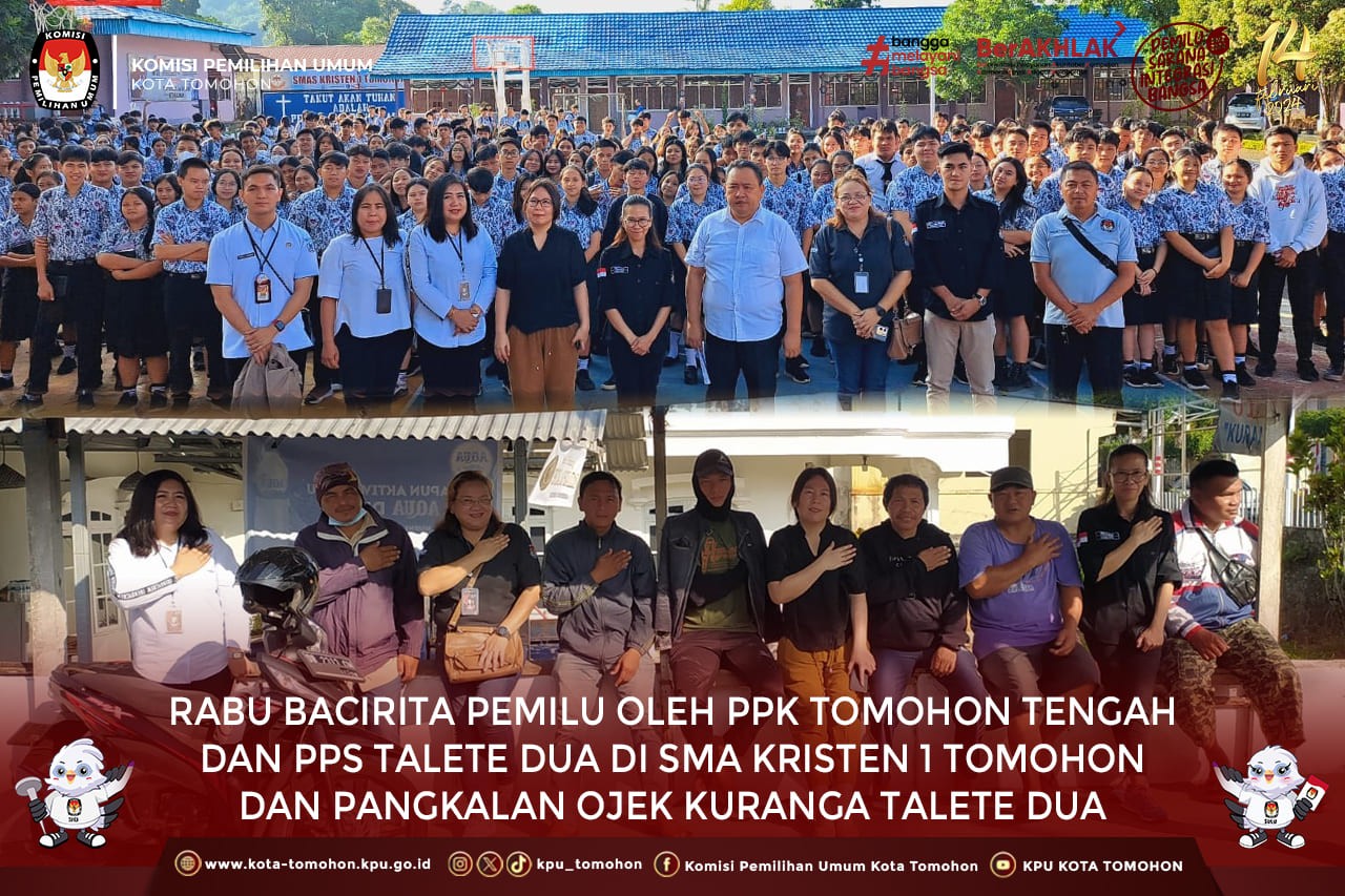 Rabu Bacirita Pemilu oleh PPK Tomohon Tengah dan PPS Talete Dua di SMA Kristen 1 Tomohon & Pangkalan Ojek Kuranga Talete Dua