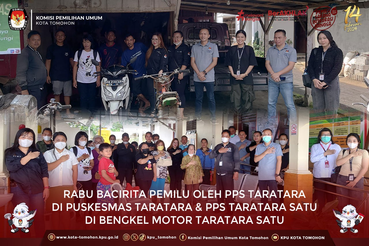 Rabu Bacirita Pemilu oleh PPS Taratara di Puskesmas Taratara & PPS Taratara Satu di Bengkel Motor Taratara Satu